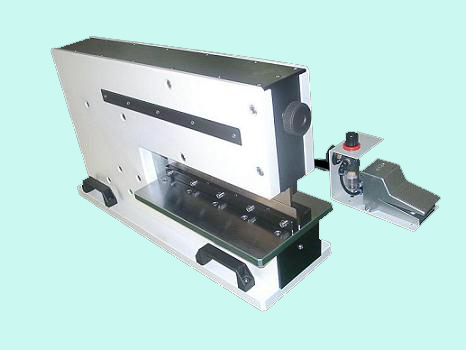 采用最新气电式轻量化设计,高科技的喂料设施,无需人工操作,连续完成无剪切应力切板行程,特别适用于切割精密SMD或薄板.无圆刀型分板时产生的弓形波(BOW WAVES)及微裂痕(MICRO CRACK),使用楔形刀具线性分板,剪切应力降至最低。